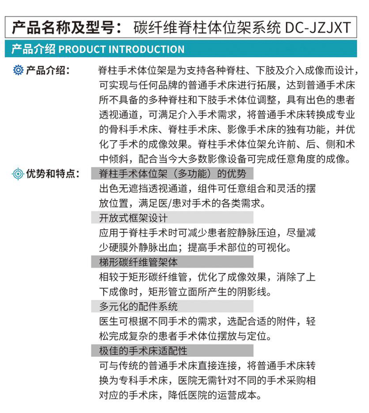 碳纤维脊柱体位架系统DC-JZJXT